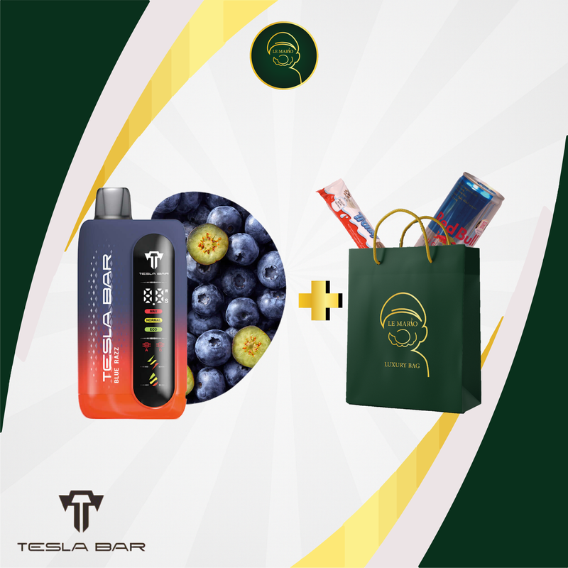 Get bold, sweet, and tangy in every puff with the Tesla Bar XT 23,000 Puffs Blue Razz. This premium disposable e-cigarette blends the juicy tartness of blue raspberry with a smooth, candy-like sweetness, delivering a refreshing vape experience that lasts for weeks. • 🌬️ 23,000 Puffs – long-lasting performance • 💙🍇 Flavor: Tangy Blue Raspberry • ✅ Nicotine Strength: 5% (50mg) – smooth, satisfying hit • 🔋 Rechargeable USB-C battery for consistent enjoyment • 🛡️ Sleek, portable, and leak-proof design Perfect for vapers who love a bold and fruity candy-inspired flavor in a premium, long-lasting device.